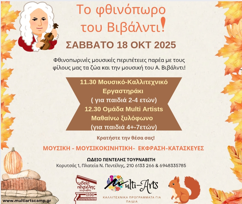 Έρχεται το Φθινόπωρο του Βιβάλντι-Σαββ 18Οκτ- θεματικά Εργαστήρια για παιδια